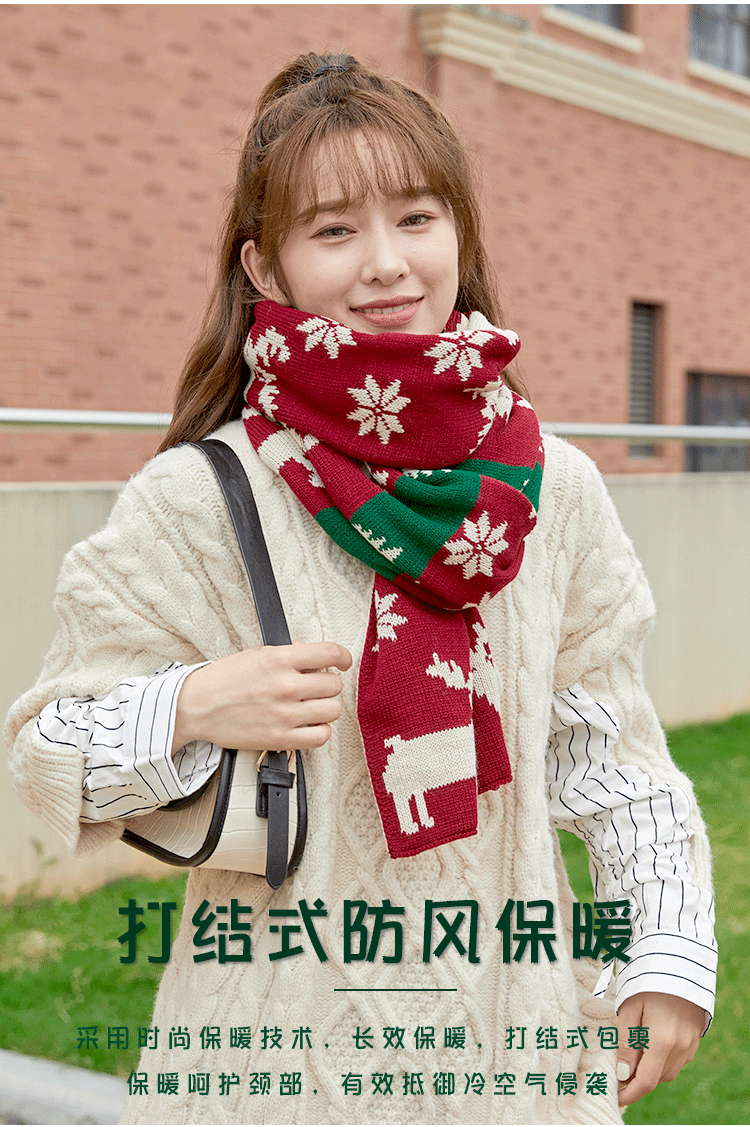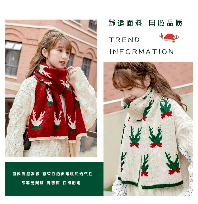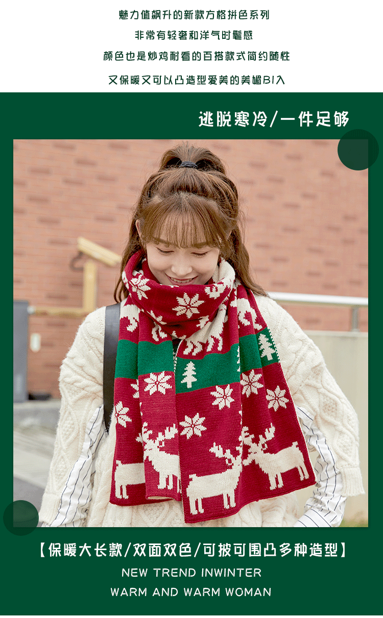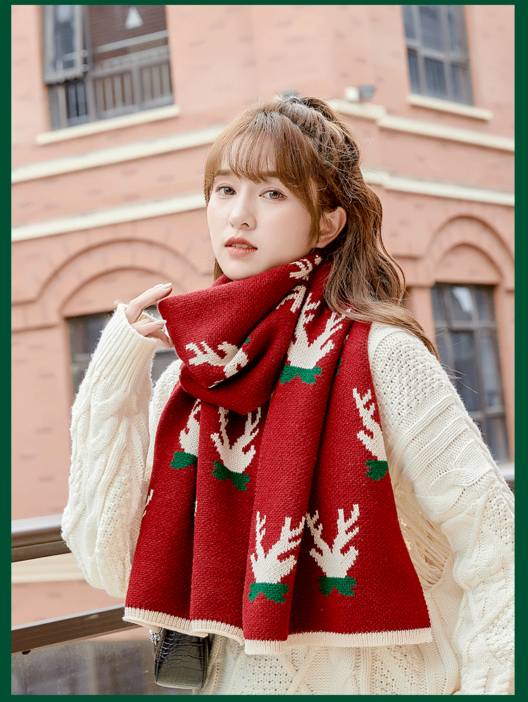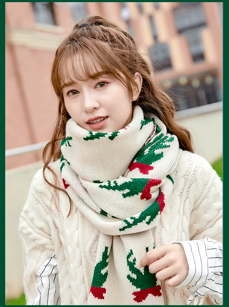 Christmas Deer Knitted Scarf Female Red Thick Warm Bib Student Long Gift Green Christmas Bib