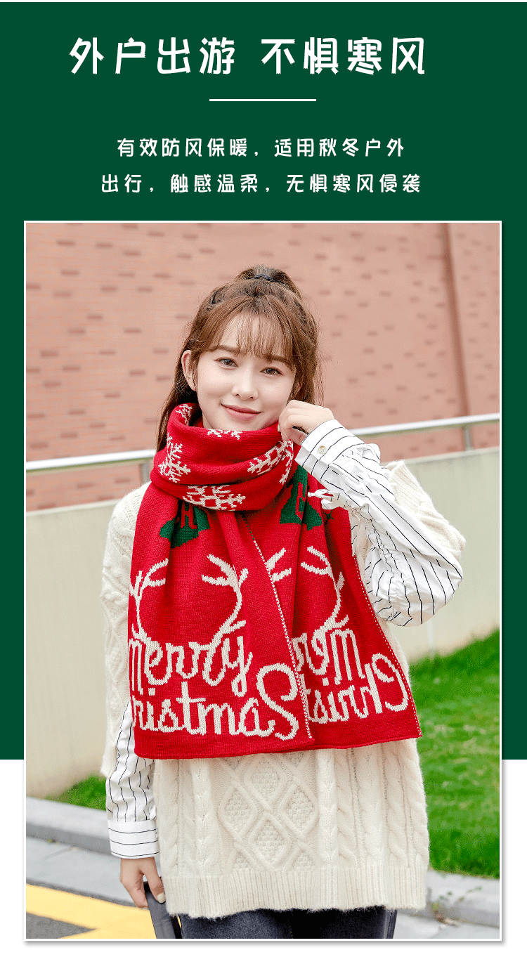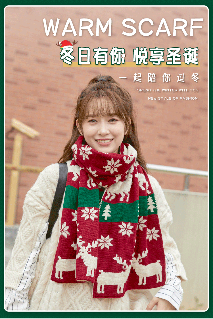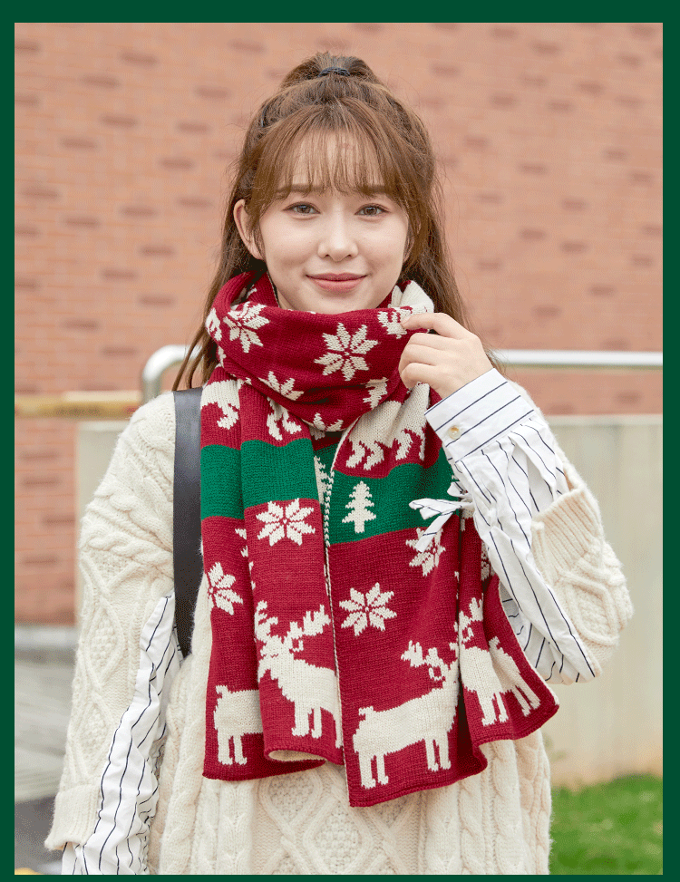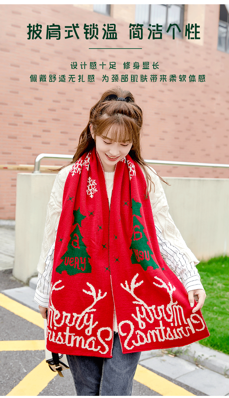 Christmas Deer Knitted Scarf Female Red Thick Warm Bib Student Long Gift Green Christmas Bib