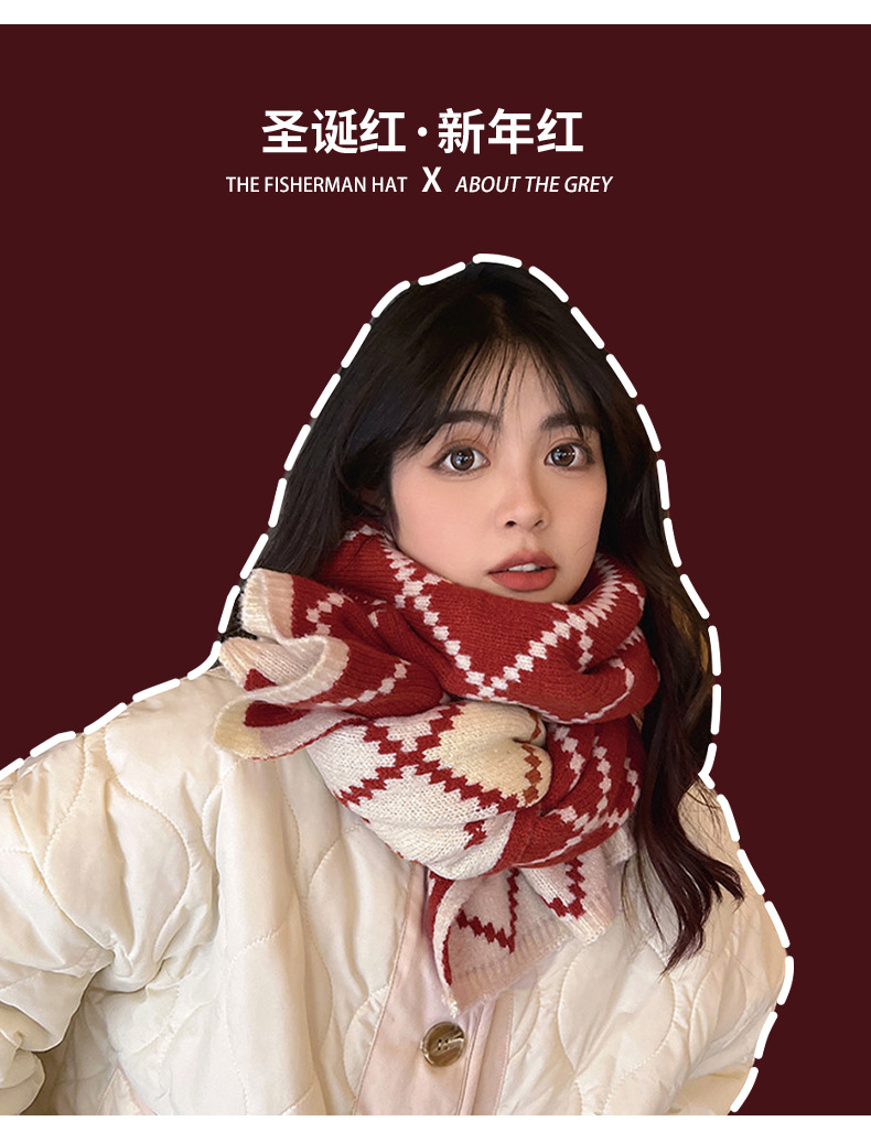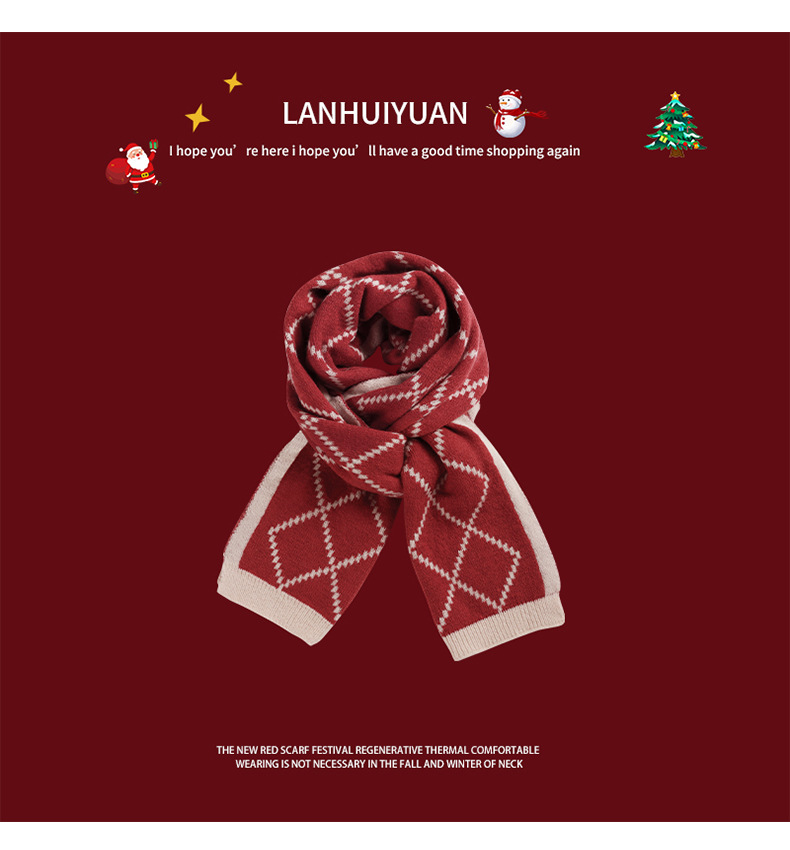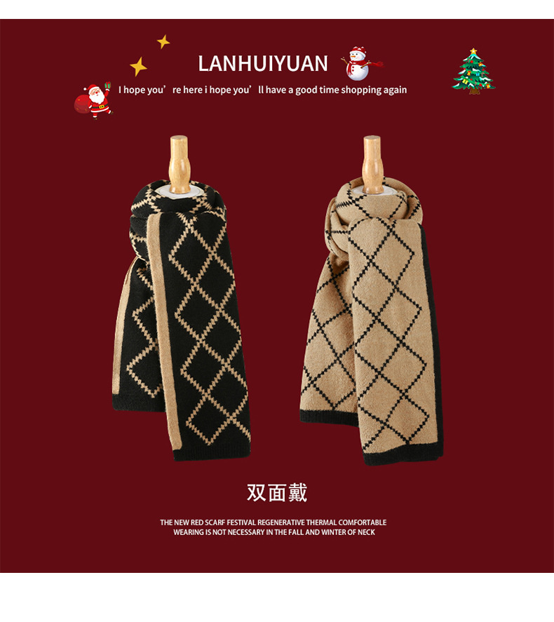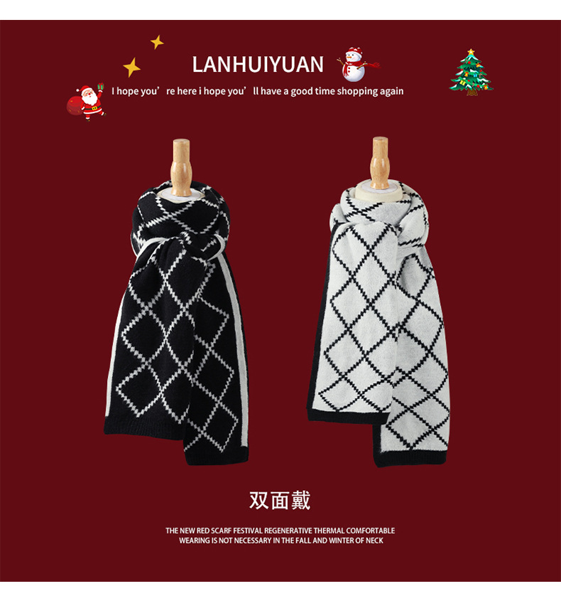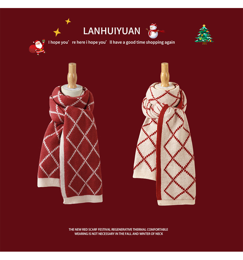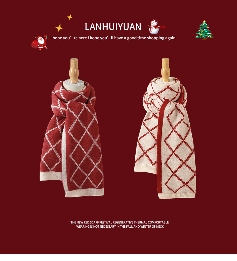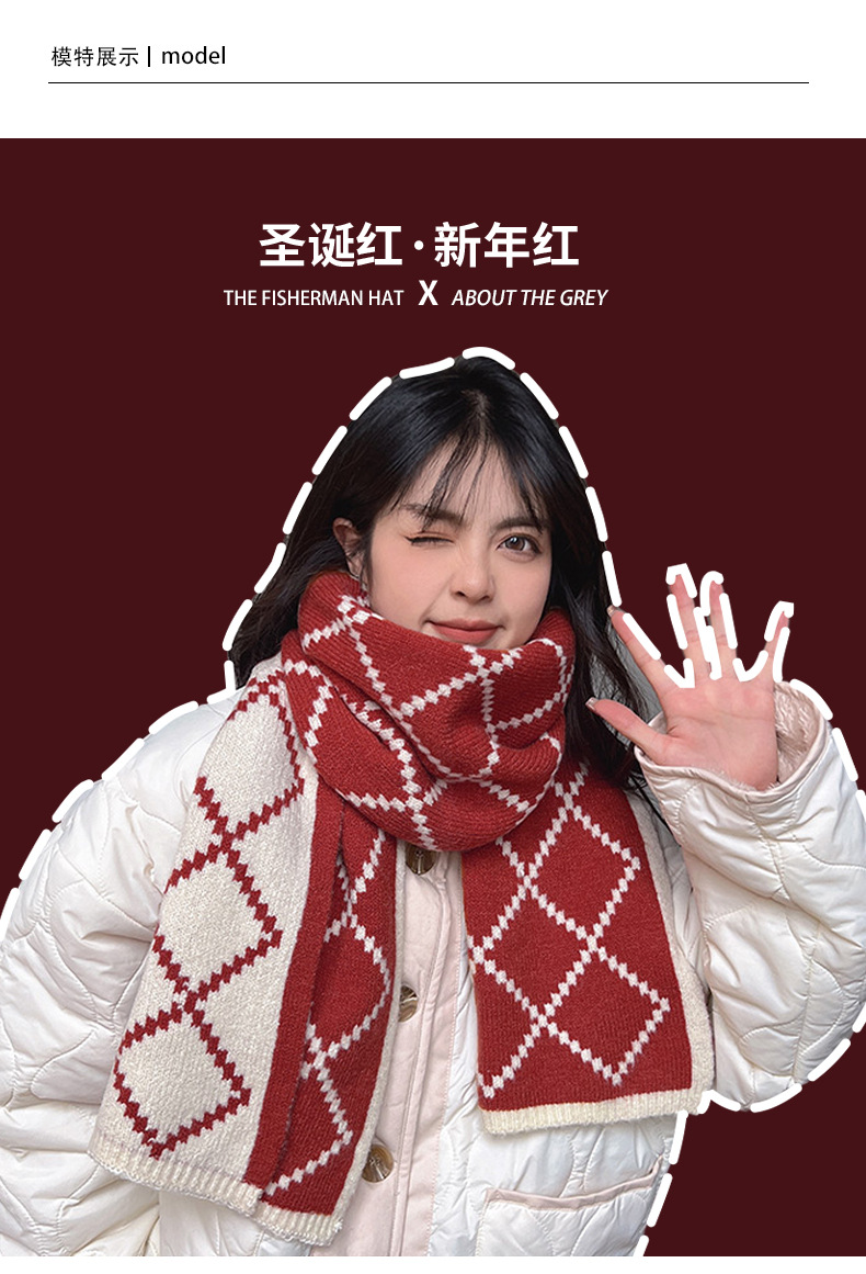 Christmas Red Knitted Scarf For Women Winter New Korean Version Of The New Year Checkered Bib Couple Warm Shawl For Men