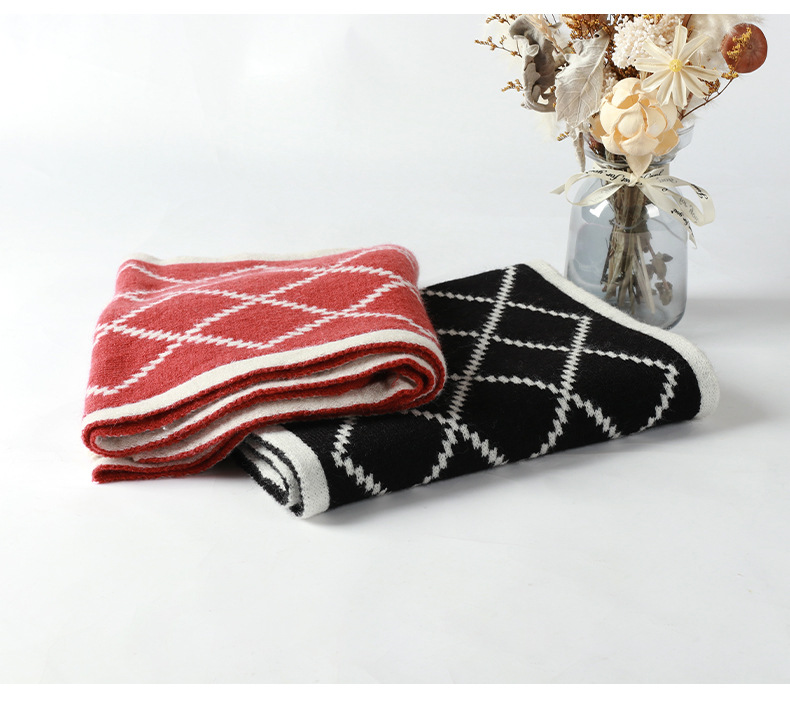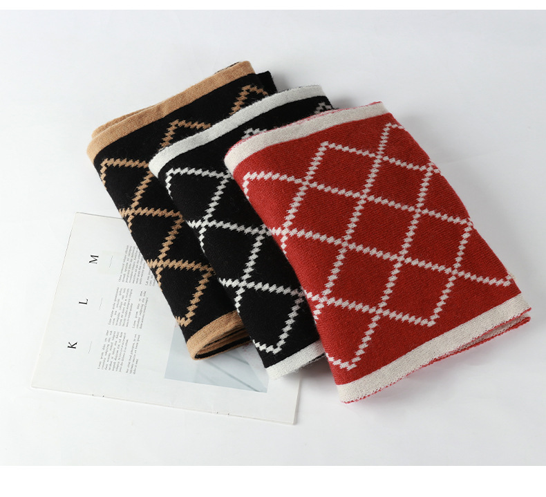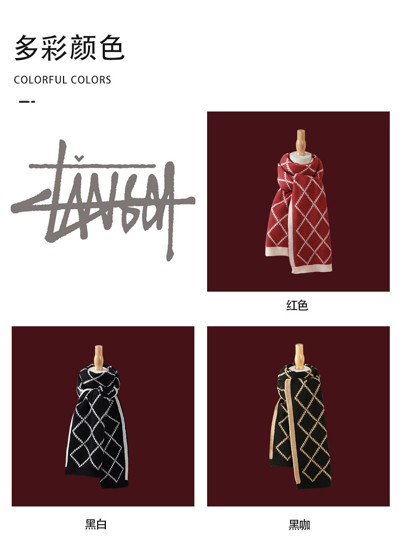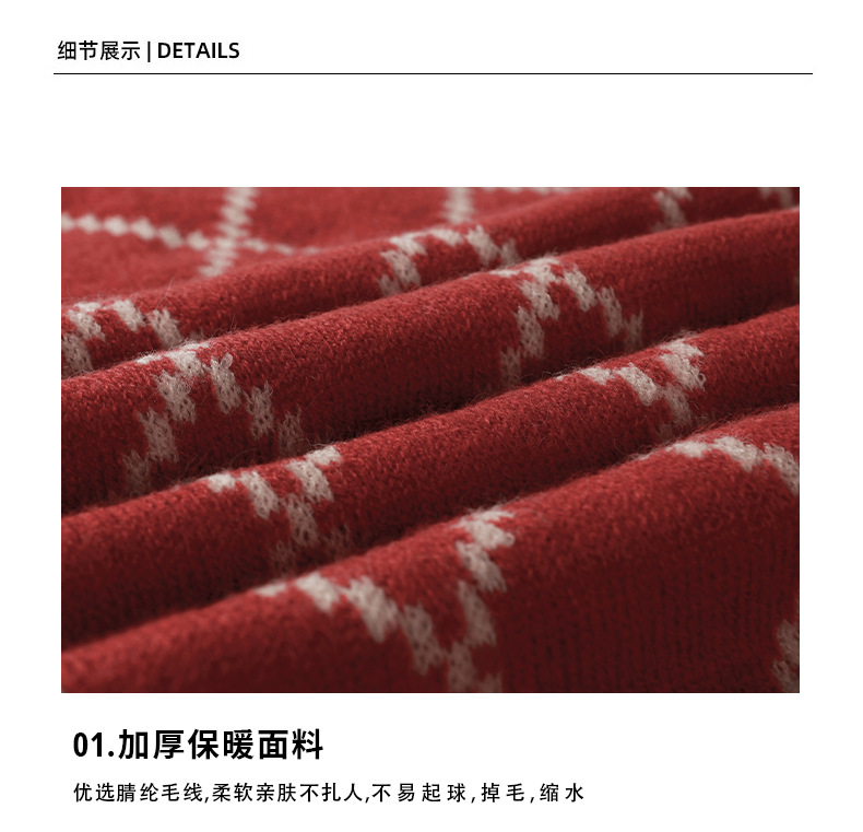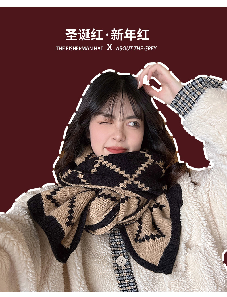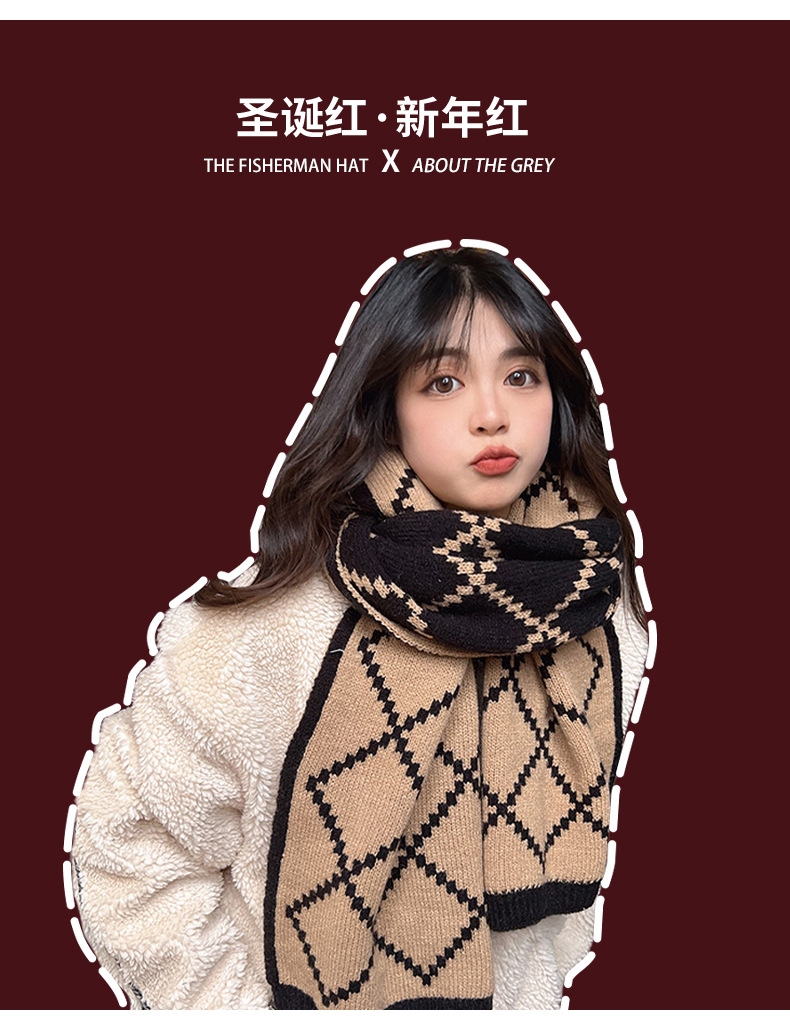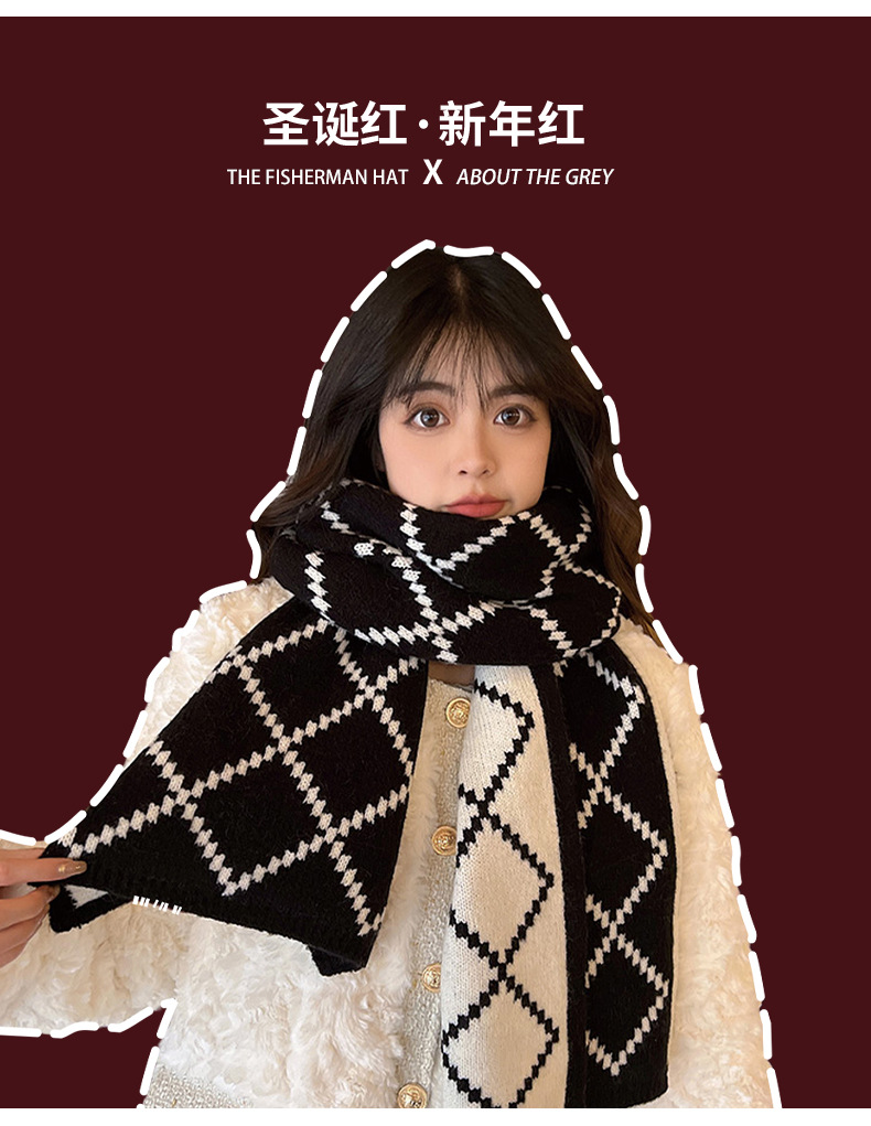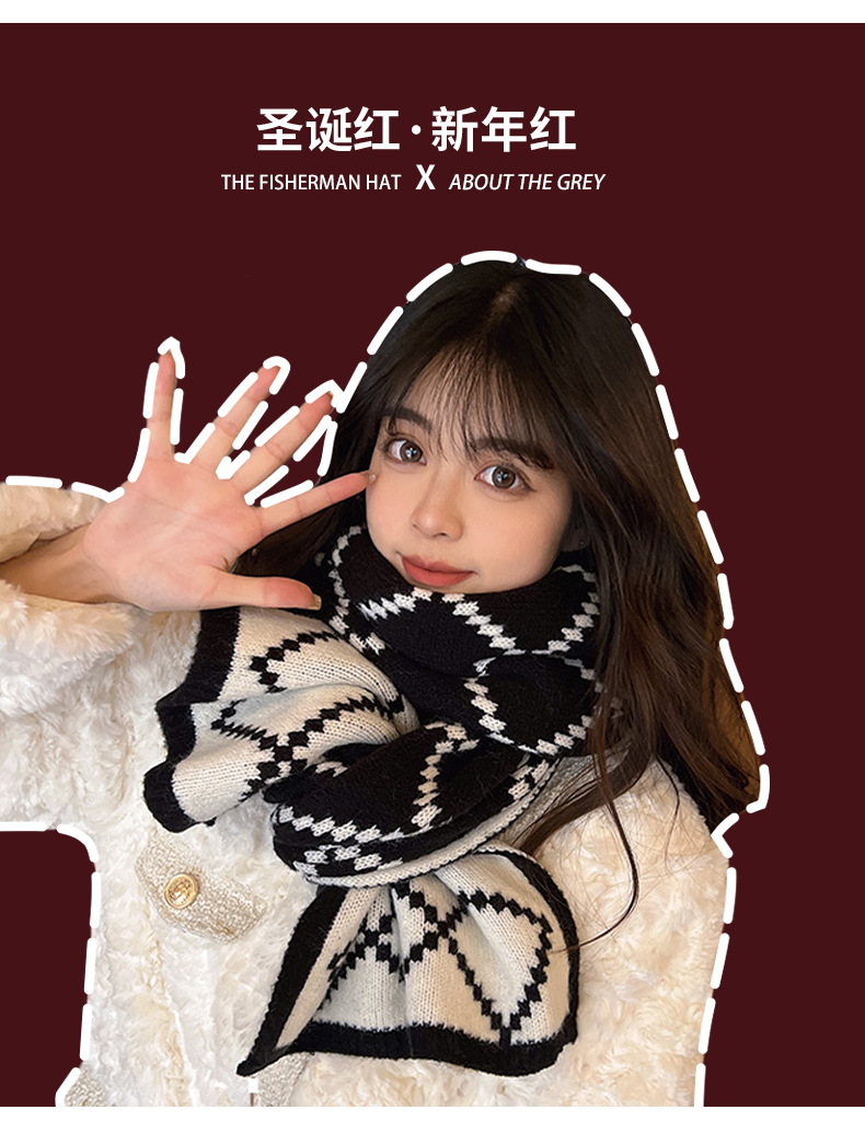Christmas Red Knitted Scarf For Women Winter New Korean Version Of The New Year Checkered Bib Couple Warm Shawl For Men
